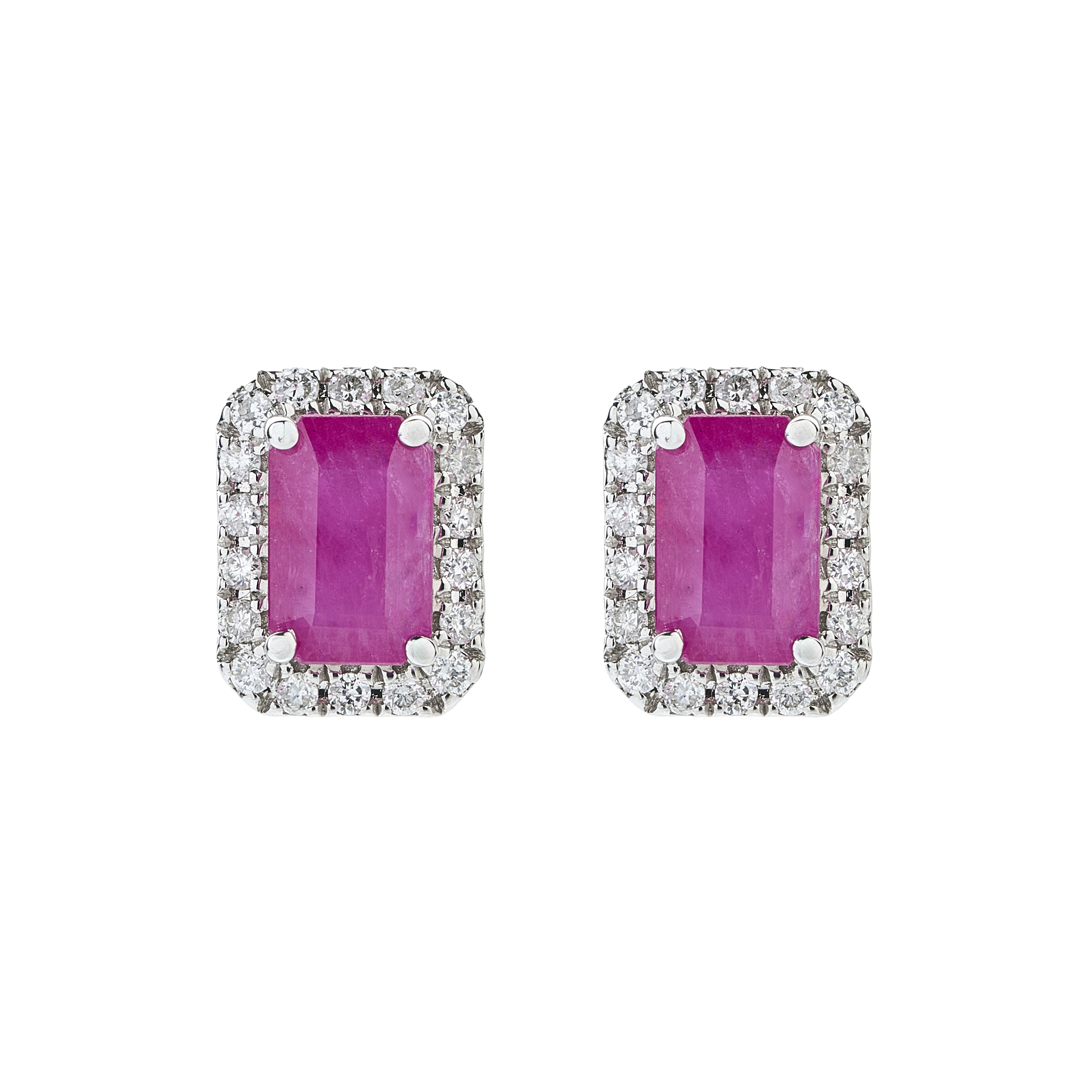 Aros de Rubies Oro Blanco 18k